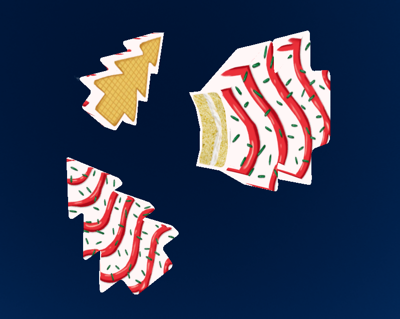 The desert table isn't safe when we're around! Enjoy this two for one package holding two of the most iconic holiday treats of all time. A legally distinct Christmas tree snack cake, and an extra large candy cane that is ready for sharpening. With a very basic VRCFury set up, you can bite the cake and sharpen the cane down to a fierce weapon while duel wielding your snacks.