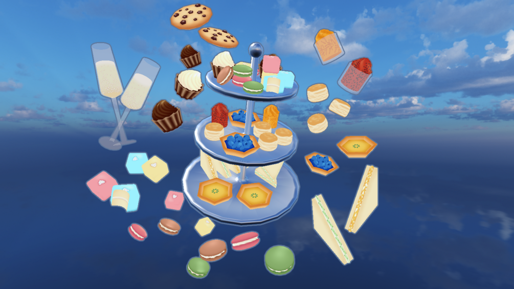 A variety of snacks and bubbly, ready for a Royal Tea Party! The package includes an FBX holding all the items atlased to one hand painted texture, along with a Unity package holding the items. The Unity package uses Poiyomi Toon Shader for the 3 materials.